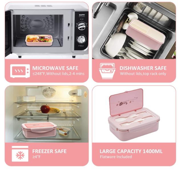 ●PERFECT BENTO LUNCH BOXES FOR YOUR HEALTHY MEALS: Our reusable bento boxes for adults and kids are easy to use, wash, and store. With our bento lunch box, you can watch what you eat when you're not at home while keeping an eye on your wallet. With 3 different compartments, you can take a complete meal just in one container. The lunch containers with portion control help you keep your diet plan and lose weight.