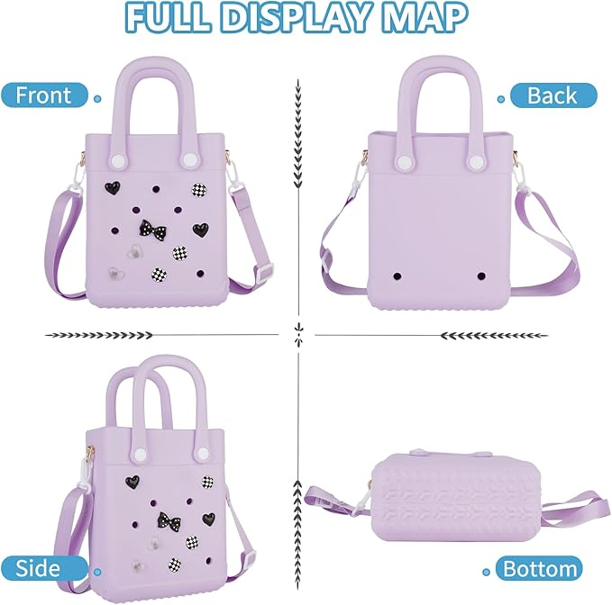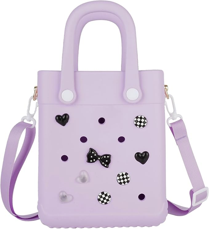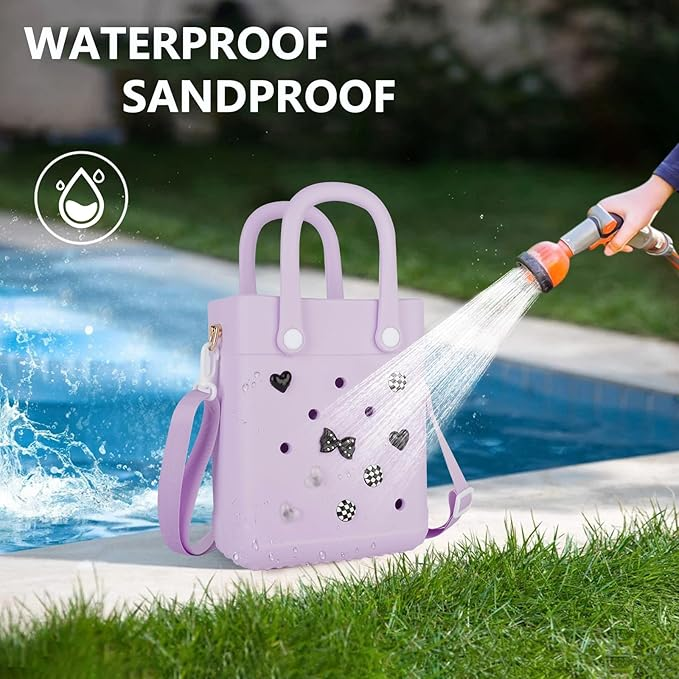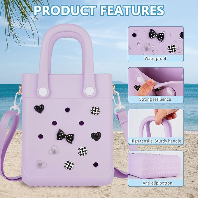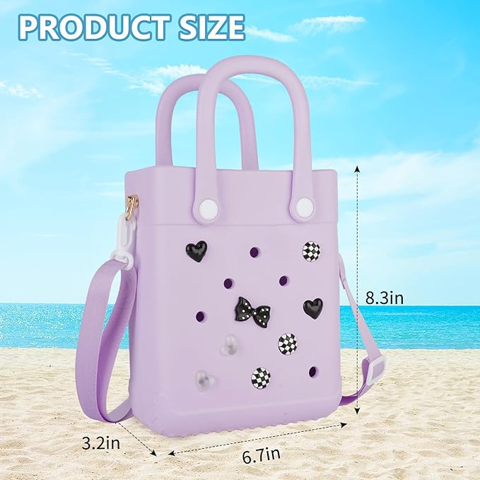 ●High Value Beach Bag: mini tote bag for little girls is fashionable and cute, and the adjustable strap ensures a comfortable fit for everyone. You can carry the small rubber beach bag on your shoulder or crossbody with a cute charm to make you look more charming.