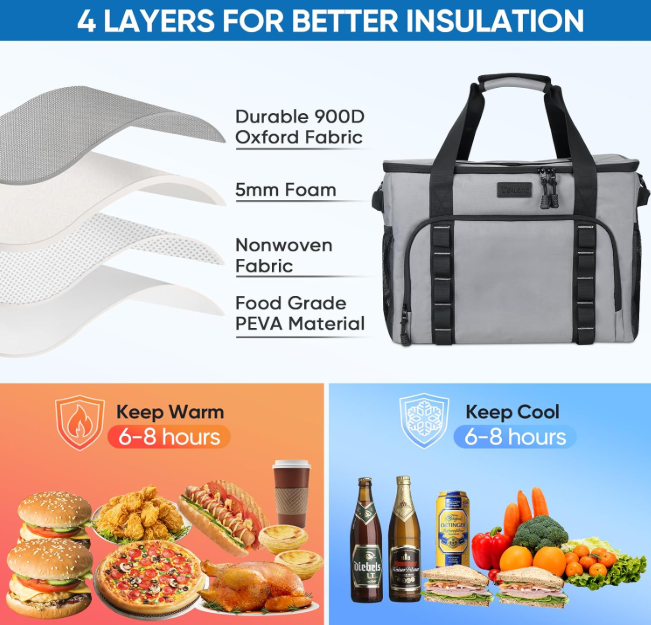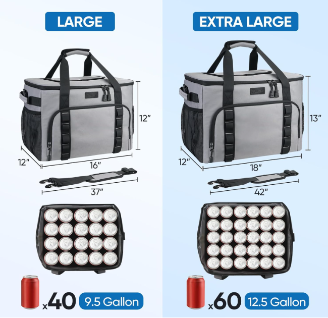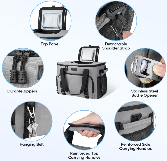 ●COLLAPSIBLE DESIGN:Don't let a bulky cooler limit your space! Our soft-sided insulated cooler bag is collapsible for easy storage when not in use. Simply fold it down to a compact size, making it perfect for small car trunks and saving space at home.