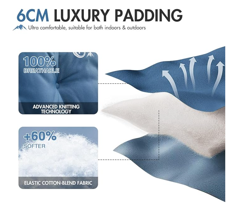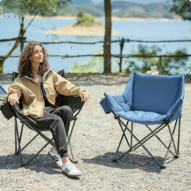 ●Ultimate Comfort: Enjoy all-around padded comfort with 6cm of plush cushioning in this padded folding chair, creating a moon chair-like experience for ultimate relaxation.