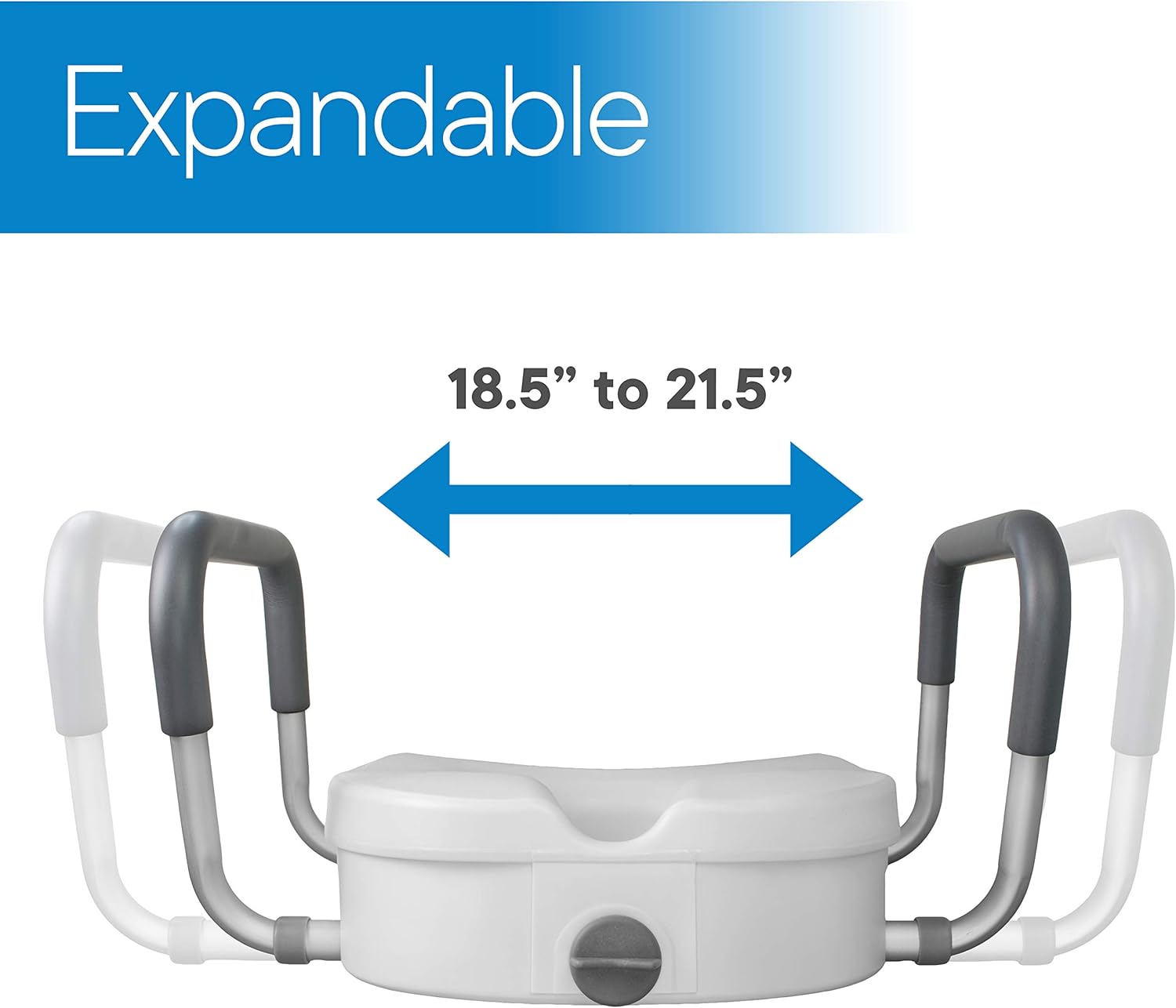ADJUSTABLE WIDTH ARMS: The two handles are adjustable in width to conform both narrow and wide body types. The width can be expanded from 18.5" to 21.5". The arms are removable and padded with a soft foam that provides soft grip but nonslip for safety and stability.