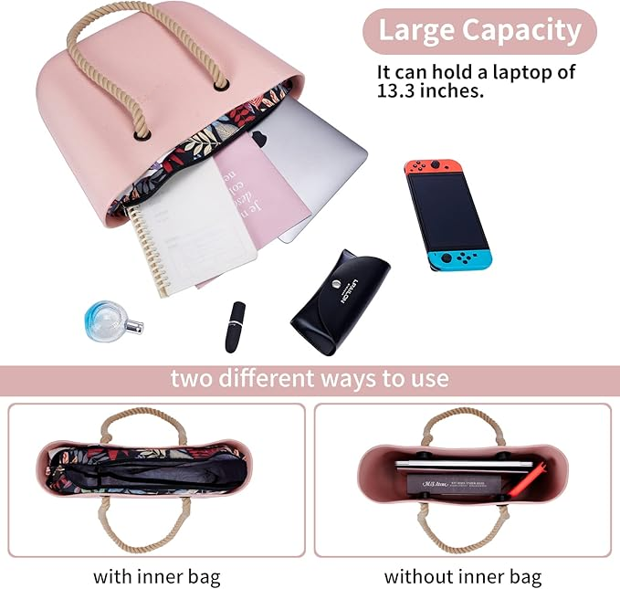 ●Large Capacity:This casual tote bag is 16.1*4.3*11.6 inch(L*W*H)but only 1.7 pounds. The capacity of the bag is 5 L, which it's perfect to organize your essential: such as small laptop, ipad, phone, purses,sunglassed, lipsticks, makeups, cards and so on.