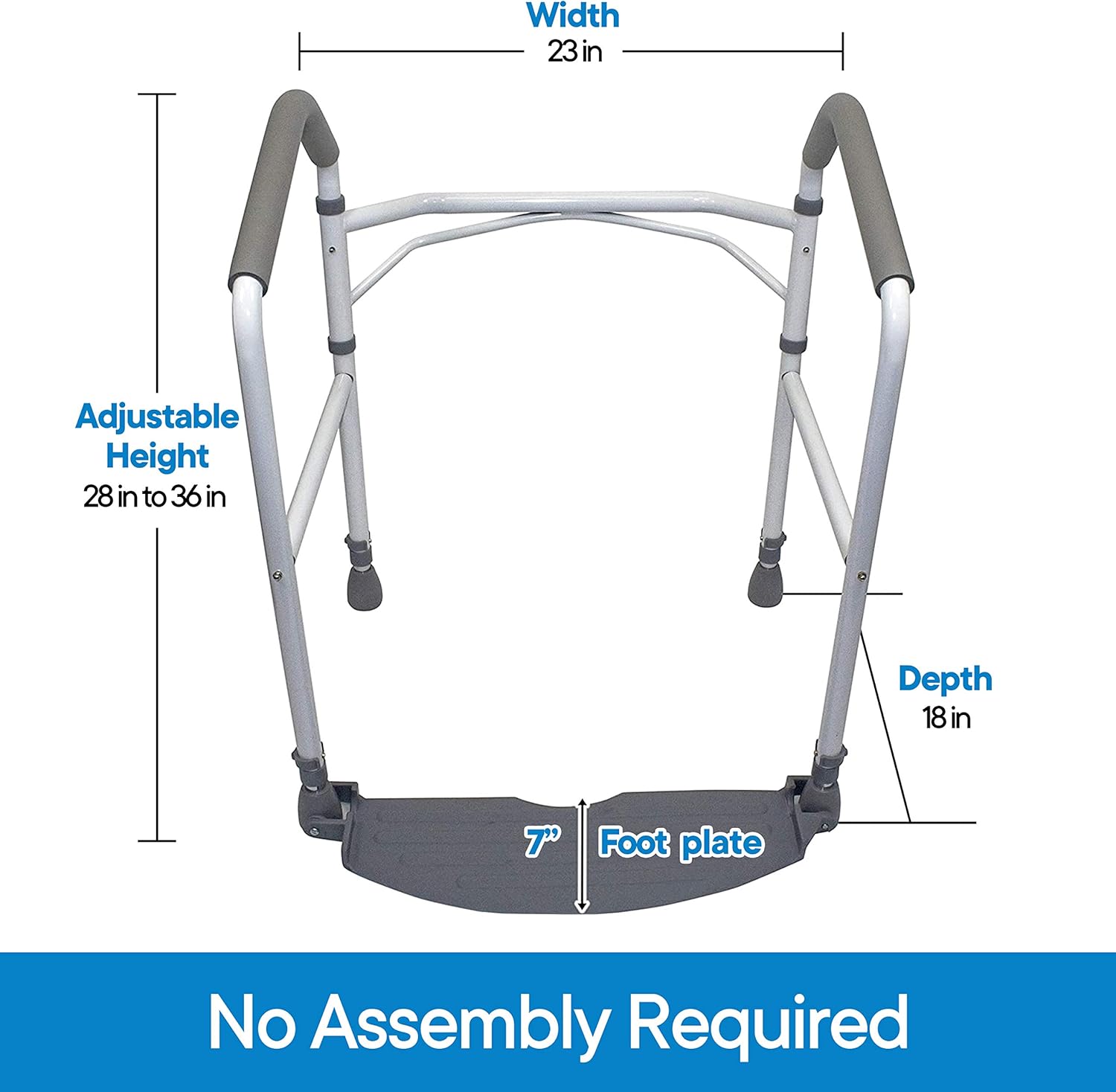 No Assembly Required! Folding and Portable Toilet Safety Frame and Hand Rail is an ideal daily living aid for anyone who suffers from limited mobility.