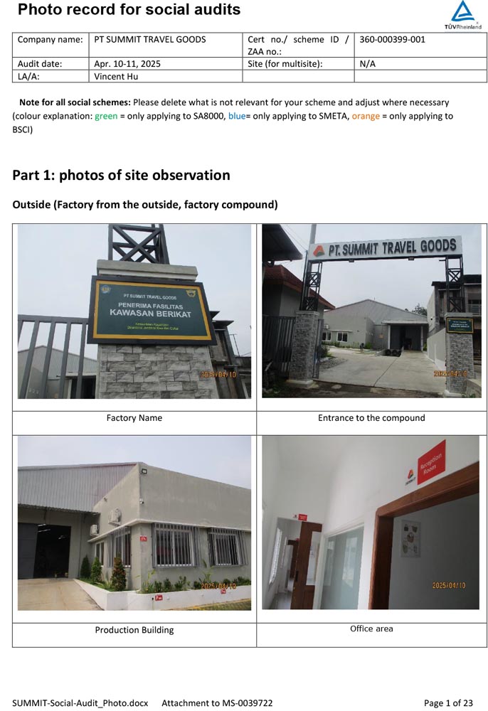 PT SUMMIT TRAVEL GOODS - SCAN Audit Report