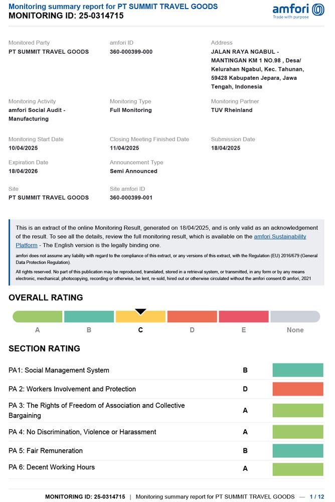 PT SUMMIT TRAVEL GOODS - SCAN Audit Report